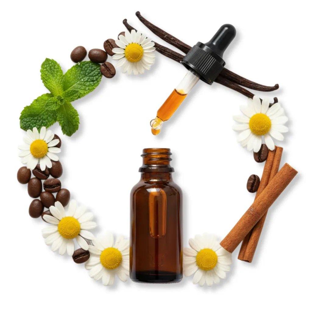 Peppermint cools, Coffee energizes, Vanilla comforts, Chamomile calms, Cinnamon warms—aromatherapy that heals skin and spirit together.